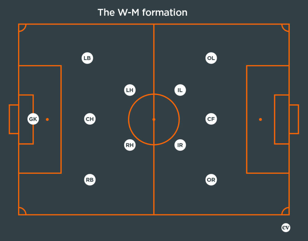 It is thought the initial development of the 4-2-4 came in the 1940s and 1950s, from the work of Hungarian coach Márton Bukovki. At that time Hungary was at the forefront of world football; Bukovki adapted the widespread 3-2-2-3 shape – better known as the W-M formation (below) – by having his centre-forward drop, while the two inside forwards advanced to create a front-line pairing.