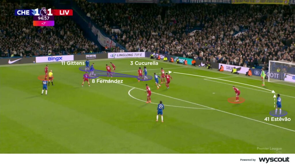 Cucurella duly delivered a cross from the left which Estêvão snuck in at the back post to finish. The game had become extremely transitional in the latter periods; this better suited Chelsea, who added fresh wingers in Jamie Gittens and Estêvão. The pair constantly got at their respective opponents, looking strong on the break and forcing Liverpool back to defend their box. On their left in particular, Chelsea had numbers and growing confidence. They drew Liverpool over, which gave Estêvão space to attack the box and grab the winner.