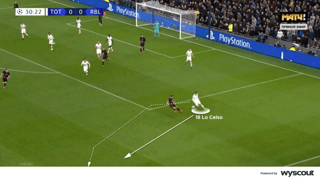 He consistently provides a passing option and has the intelligence to vary his game in response to opposing defenders. If the opponent remains in a compact shape, Lo Celso remains advanced and on the move in an attempt to receive possession on the run in more threatening spaces, and he can do so because he has such a good first touch and will take that touch with a view to progressing play.