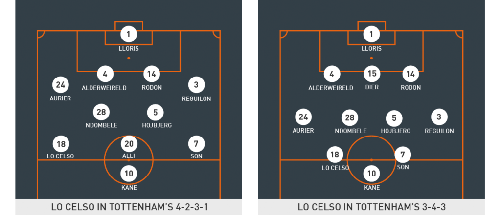 Lo Celso is a versatile player with brilliant attacking qualities who can play in any central midfield role and, at Spurs, has also played from the right. He brings an engine to midfield – both with and without the ball. When he plays further forwards he withdraws to receive possession in central midfield, contributing to him adopting a position with his back to the opposition's goal, but, given his ability to turn in limited spaces and that he excels in securing the ball with his first touch and spinning quickly, doing so rarely holds him back.