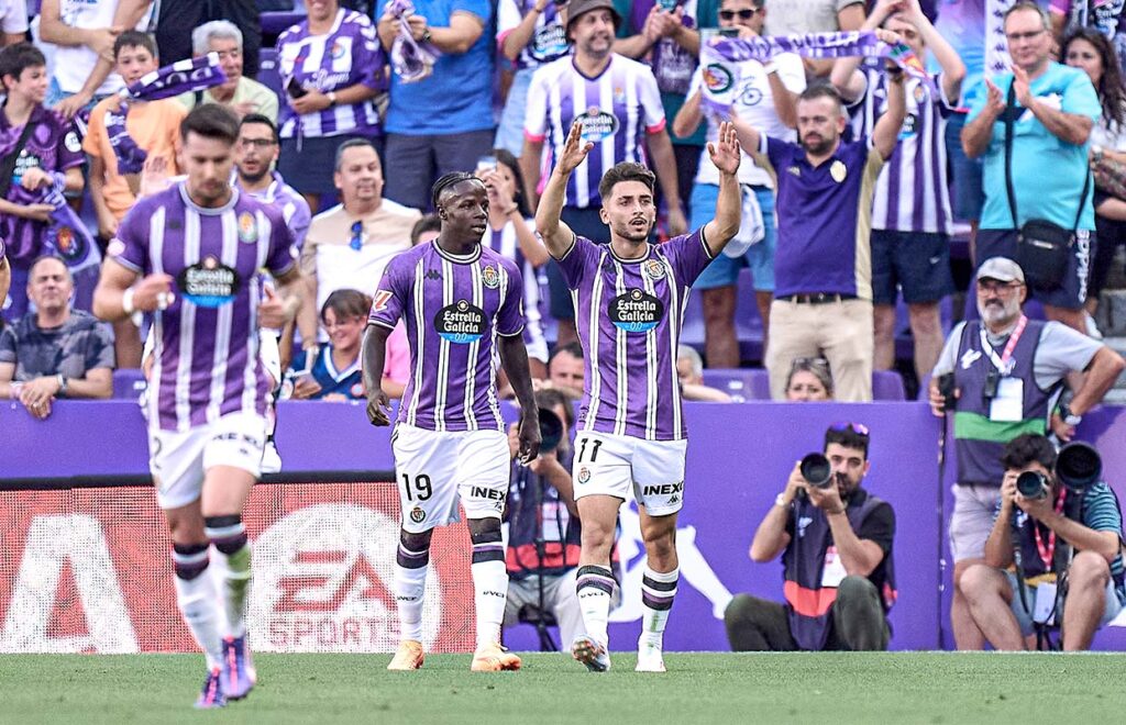Raul Moro of Real Valladolid celebrates after scoring the winner against Espanyol in August 2024 Angel Martinez/Getty Images
